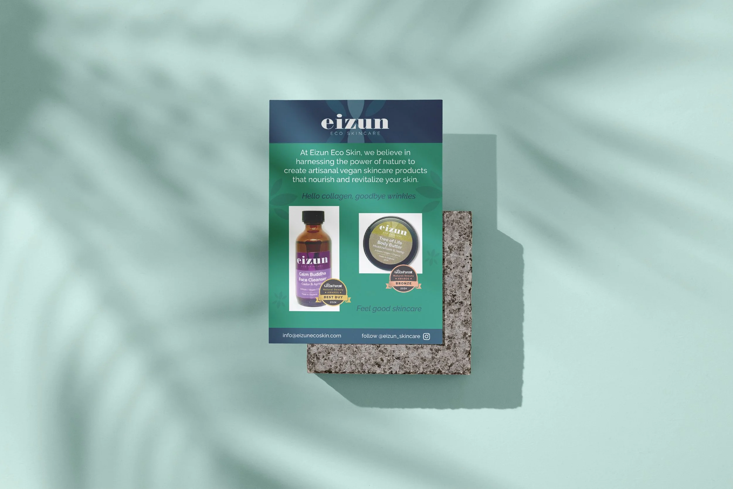 From colour palette to font, leaflets to social posts and even winning awards Eizun Eco is rising up through the vegan skin brand ranks.